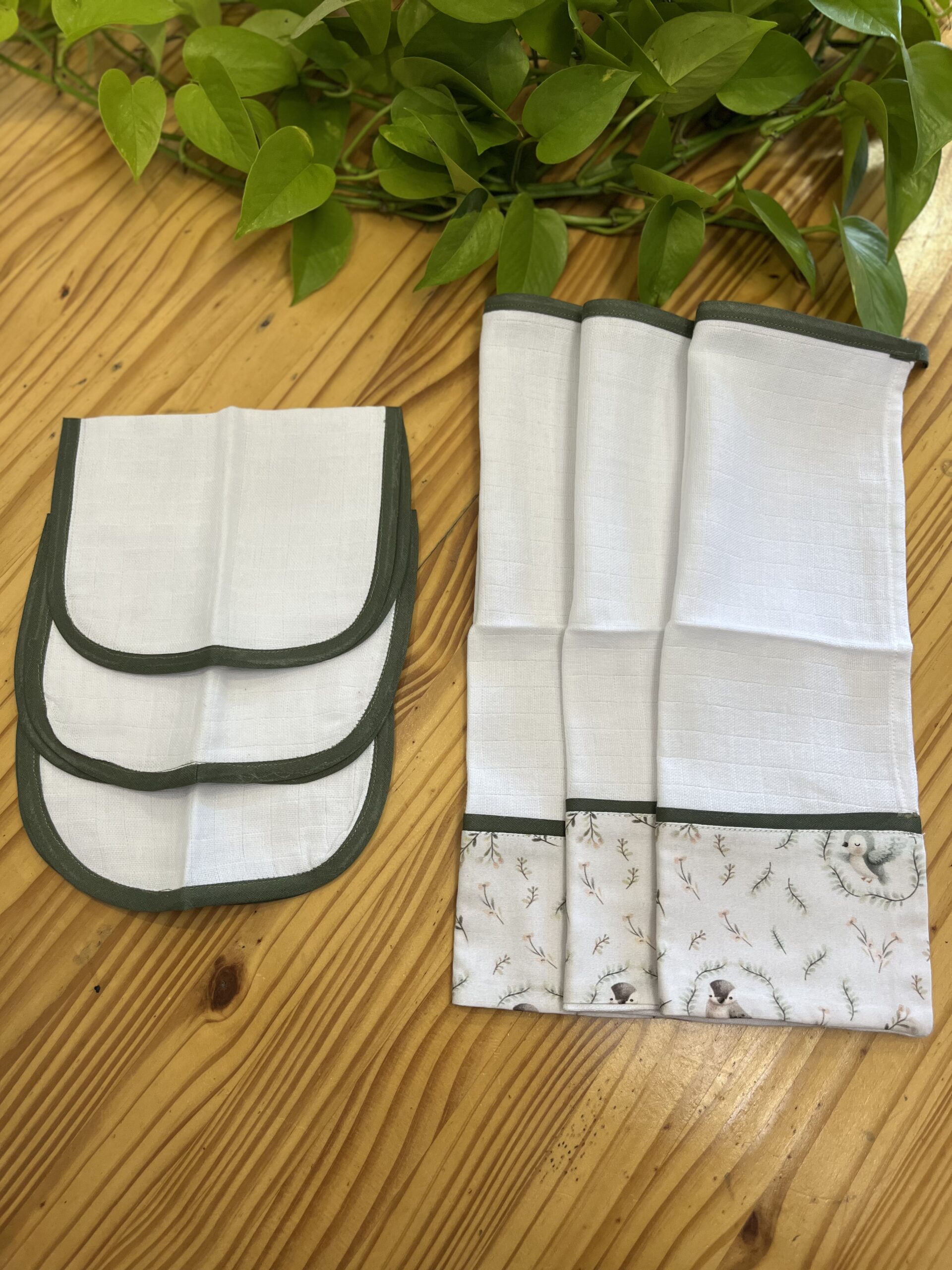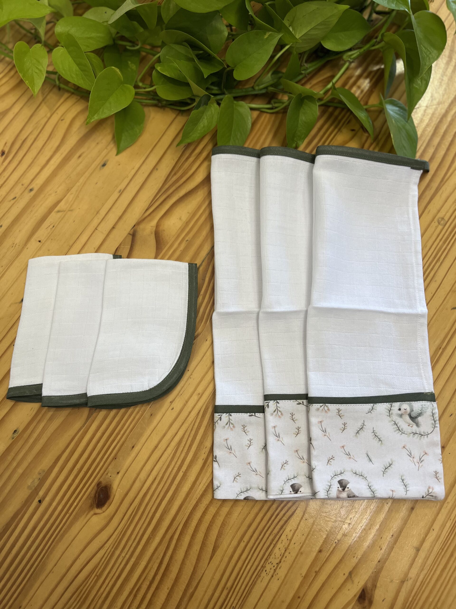 Um kit delicado e aconchegante, inspirado na tranquilidade da natureza e no carinho que o bebê merece. Com estampa de ursinho em meio ao bosque, ele foi pensado para acompanhar os momentos de cuidado do dia a dia com suavidade, conforto e muito amor. Contém: